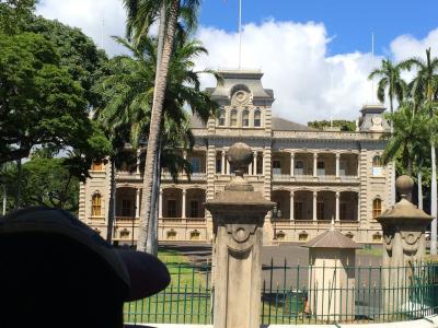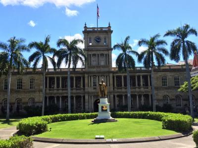 かつて官庁舎として使われたいた建物アリイオラニ・ハレの目の前に立っているので、像自体はそんなに大きく感じません。