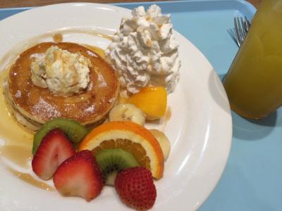 ここのパンケーキは、他のお店と違って、とにかく安い!!モーニングセットは、小さめのパンケーキとフルーツと飲み物がついて500円でした☆