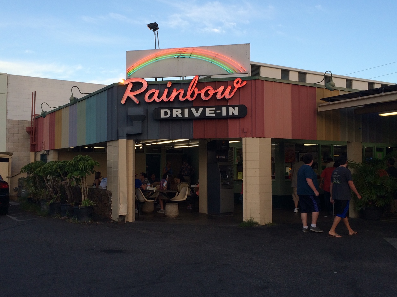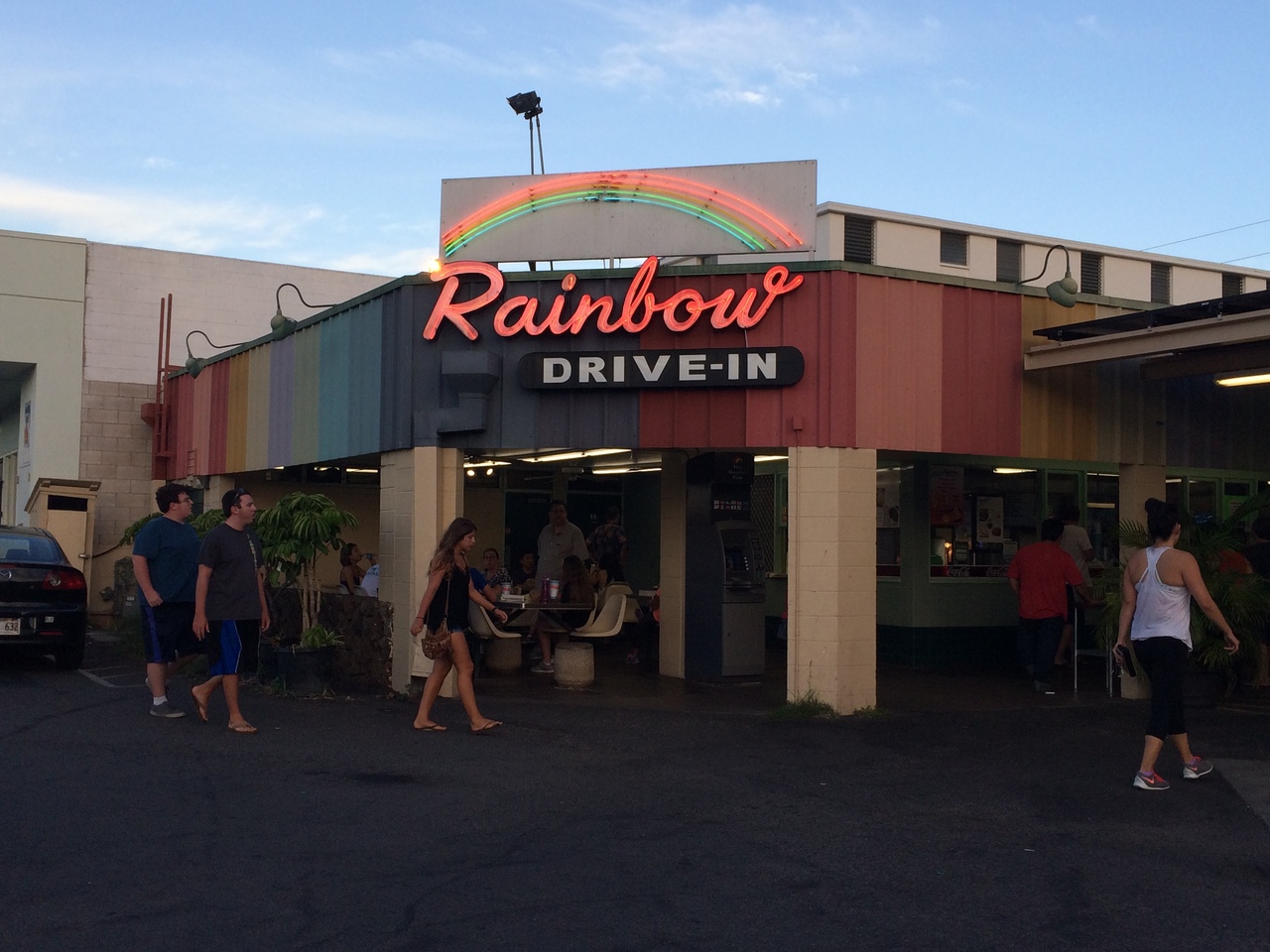 レインボードライブインは、ロコにとても人気のお店で、18時半頃行きましたが、行列ができていました。