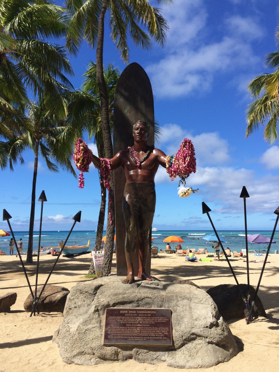 ワイキキビーチにあるので、ワイキキに泊まっている方なら、何度も目にする銅像です。
