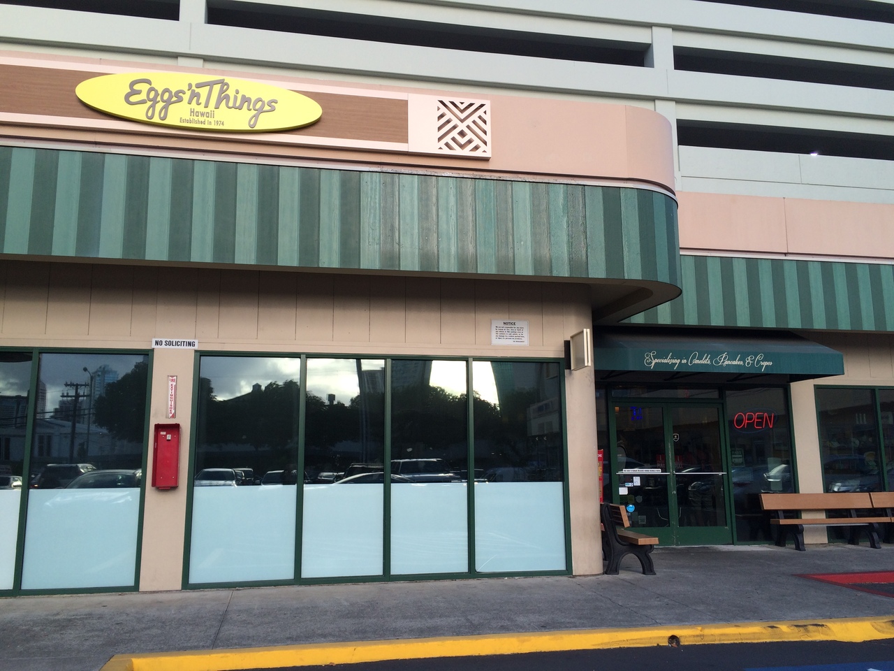 ハワイのオアフ島にあるエッグスシングス。メイン通りのカラカウア通り沿いにあります。