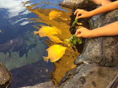 子供たちが一番楽しんでいたのは、熱帯魚のエサやり☆レタスのような葉っぱをあげるとパクパクと食べにきていたのが、すごく可愛かったです♪- 旅行時期