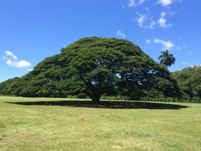 日立のCMでは、1本だけでしたが、あれは編集で1本になっているだけのようで、実際にはたくさんのモンキーポッドがありました。木陰がとっても涼しいので、のんびりするのにオススメです♪- 旅行時期