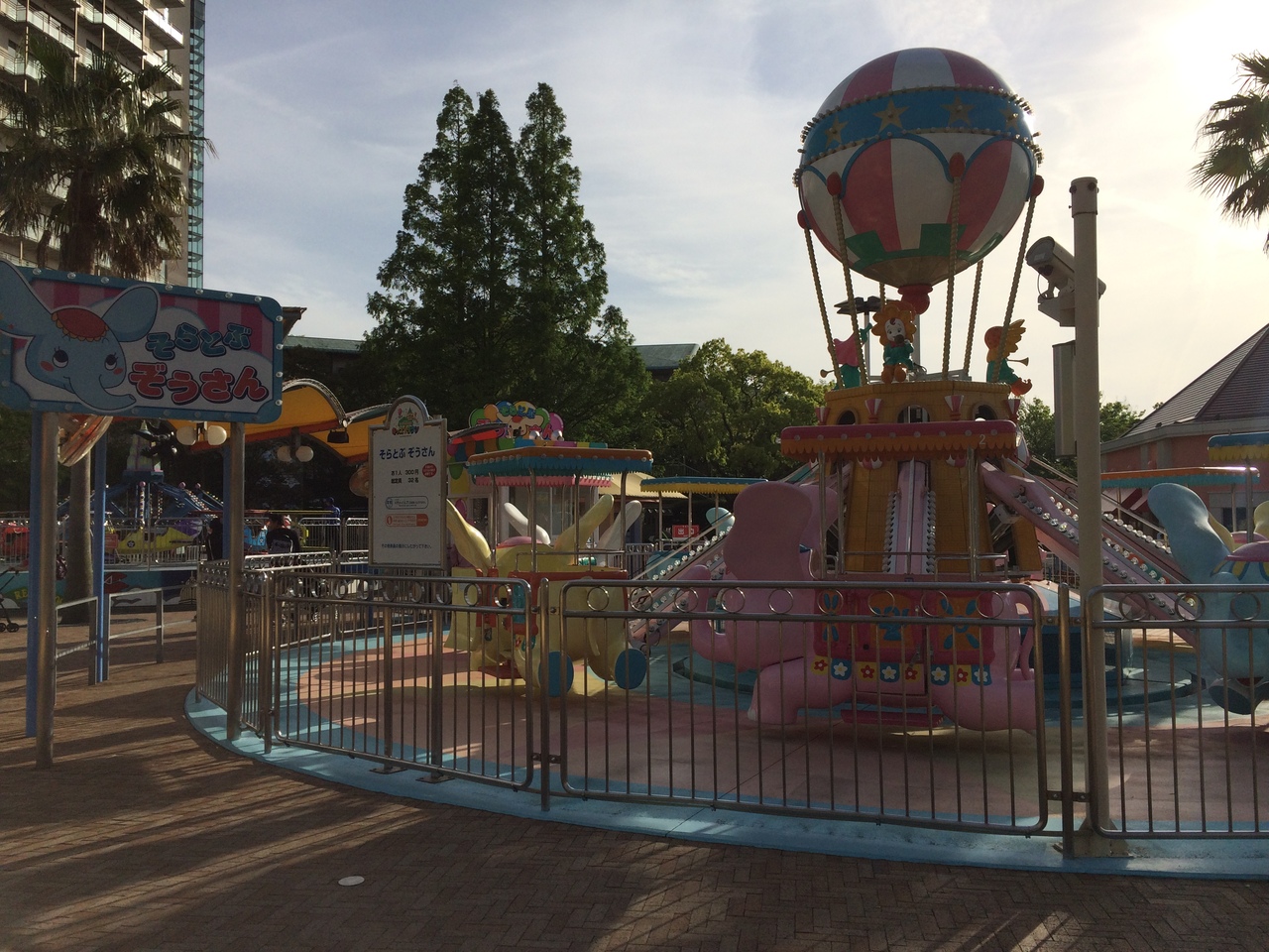 ゾウさんの背中に乗って、くるくる回転する乗り物です。ディズニーランドのダンボみたいな乗り物かな。4人乗りなので、家族で乗ることもできるので、待ち時間も少なくてオススメです♪