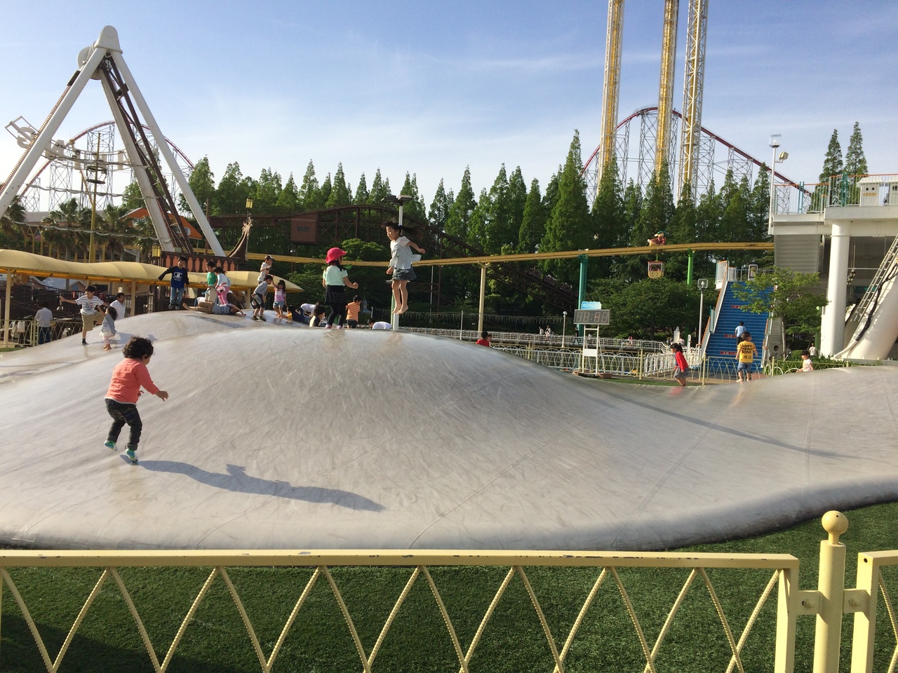三重県のナガシマスパーランド内にあるアトラクションです。キッズタウンエリアにあります。アトラクションといっても、ふわふわの銀色の丘みたいなものがあって、そこで飛び跳ねて遊ぶというものです。