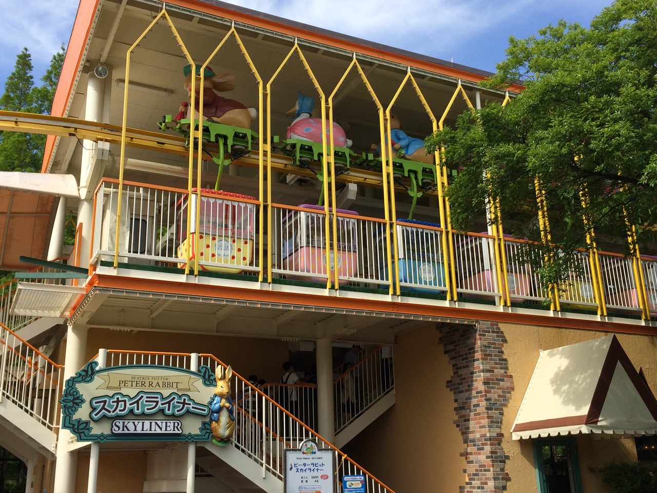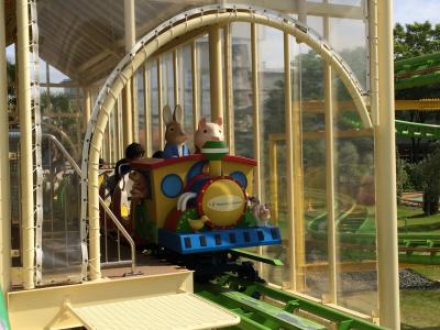 ピーターラビットのキャラクターたちに乗って、園内をぐるっと回る乗り物です。ただ、そんなに距離は長くないので、物足りない感があるかなぁ。