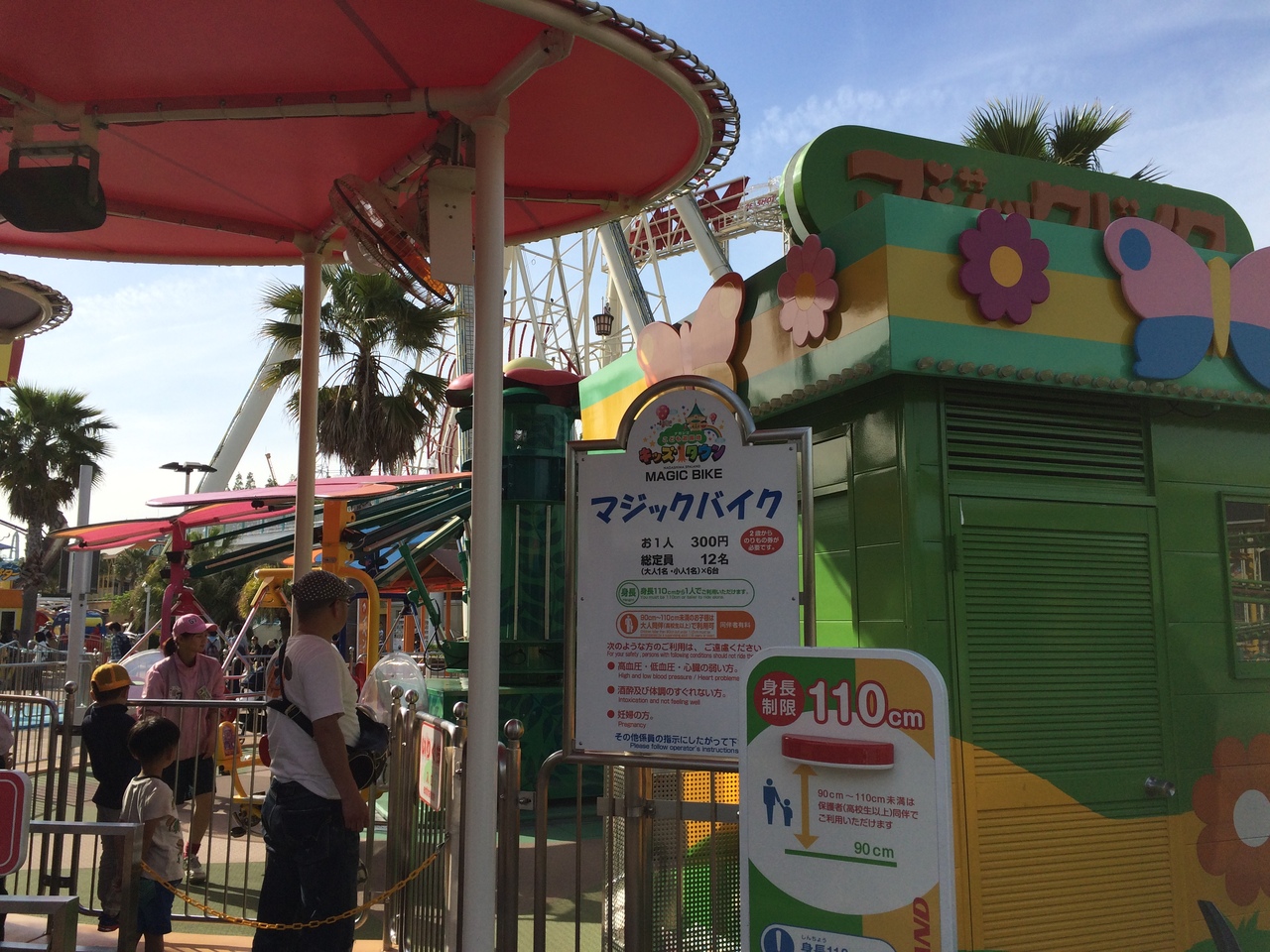 三重県のナガシマスパーランド内にあるアトラクションです。キッズタウンエリアにありますが、ちょっと奥まった場所にあるので、分かりづらいかな。