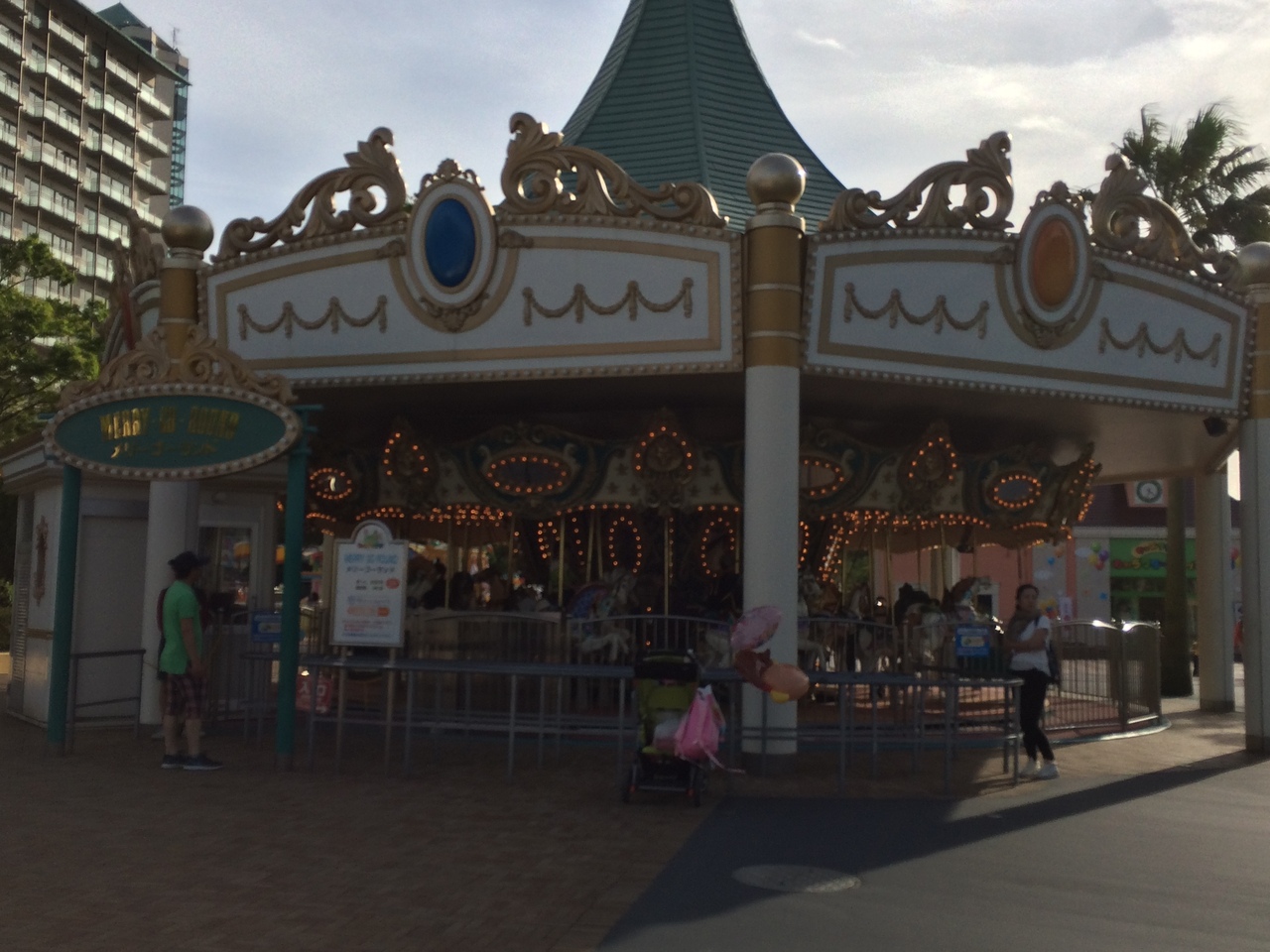三重県にあるナガシマスパーランド内のアトラクションです。まさしく元祖メリーゴーランドという感じで、遊園地に来たなぁという気分にさせてくれます。