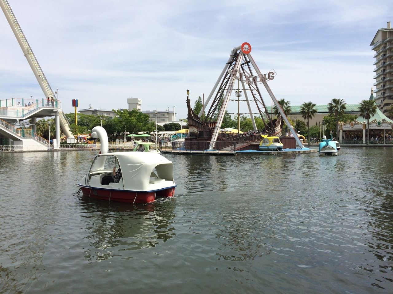 三重県のナガシマスパーランド内にある乗り物です。いわゆるあひるのボートですね。ペダルを漕いで進むのですが、これが結構しんどい・・・。子供は、操縦ばかりして漕がないので、大人は大変かも~!!