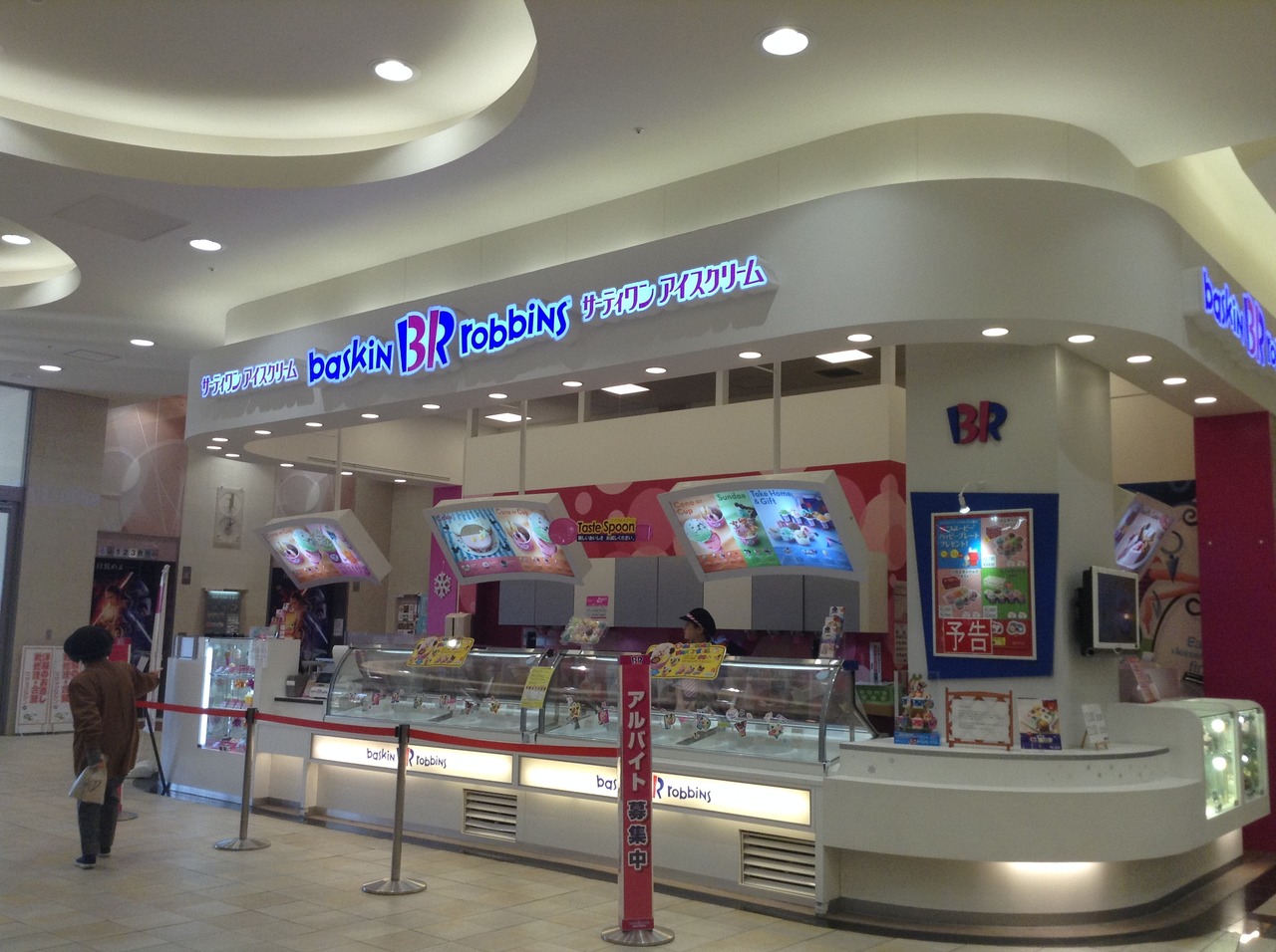 岐阜県大垣市にあるイオンタウン大垣の中のサーティワンです。サーティワンのアイスクリームは美味しいので、食後に食べたくなってしまいます。