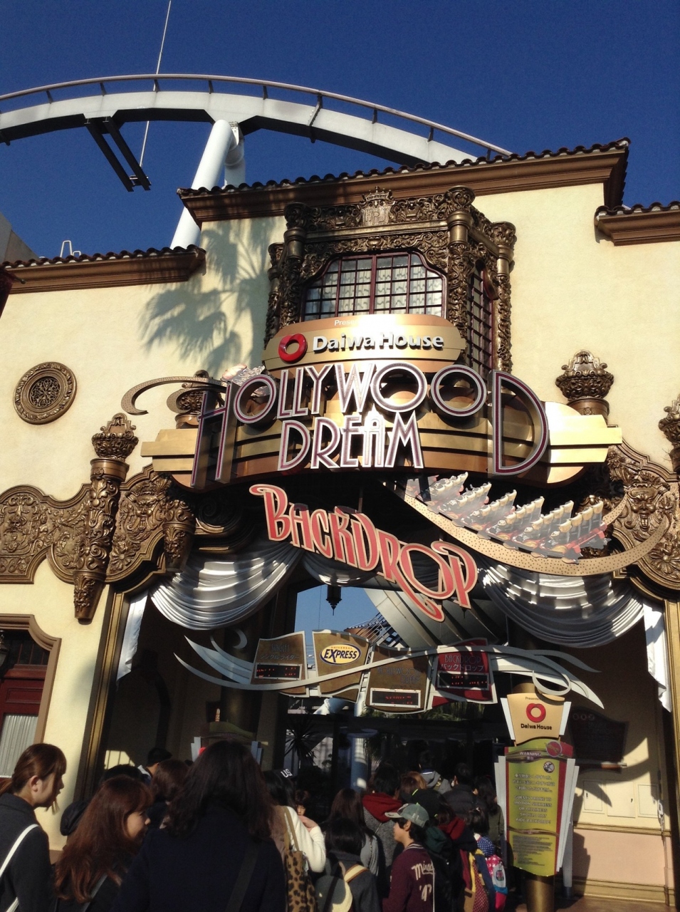 USJのあるジェットコースターです。前向きに進むのと、後ろ向きに進むバックドロップがあります。