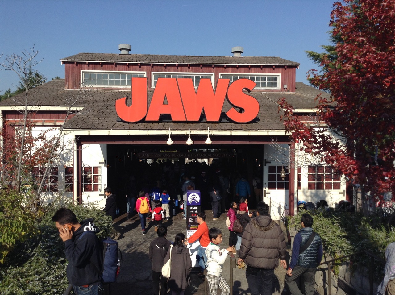 USJにあるアトラクションのひとつです。映画『ジョーズ』の世界が楽しめるアトラクションです。サメが出てきたり、爆発したりと迫力があって面白いです。