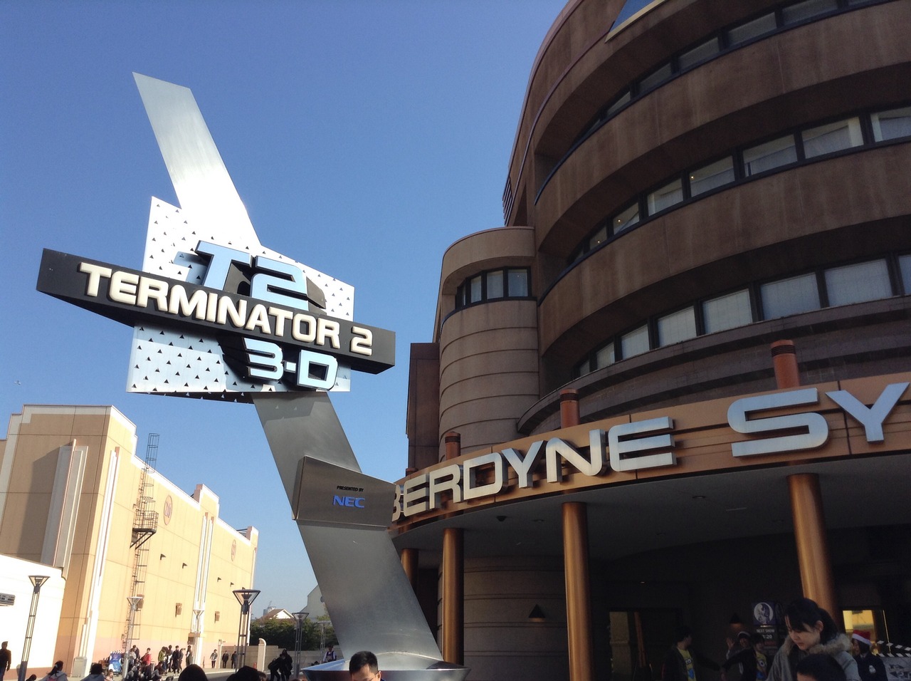 USJの中にあるアトラクションです。実際の人物と3Dの映像が組み合わさったアトラクションで、ターミネーターの映画の中にいるみたいな感覚になります。