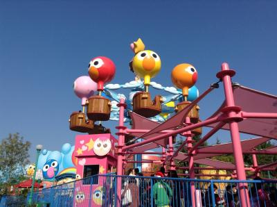 USJのユニバーサルワンダーランドの中にできた新しい乗り物です。バルーンに乗って、上に上がってまわる乗り物ですが、ハンドルがついているので、まわすとコーヒーカップのようにクルクル上で回ります。