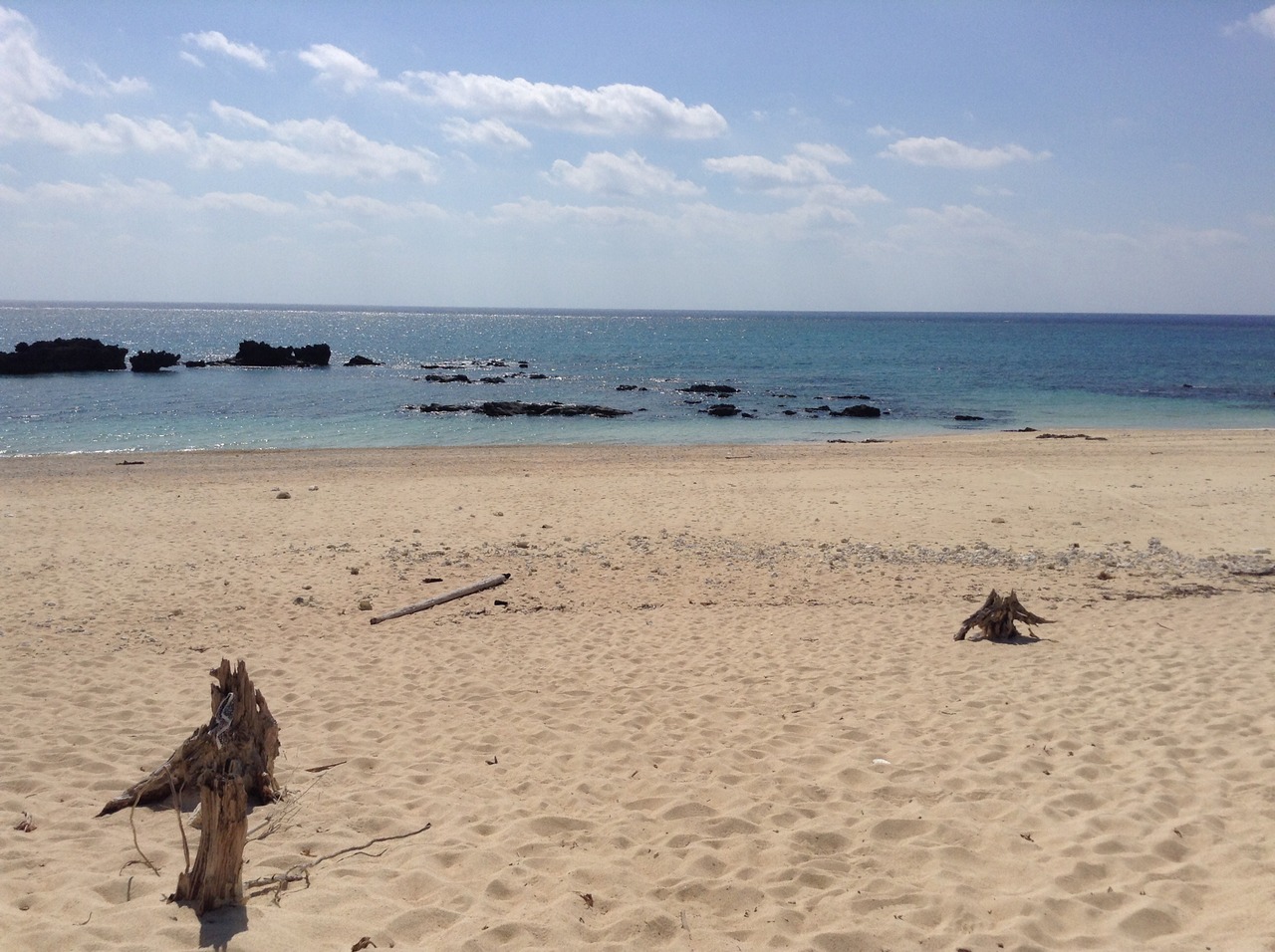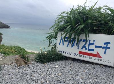 与論空港から徒歩で行けるパラダイスビーチ☆もずくそばを食べに『碧い珊瑚礁』に行った際に立ち寄りました。
