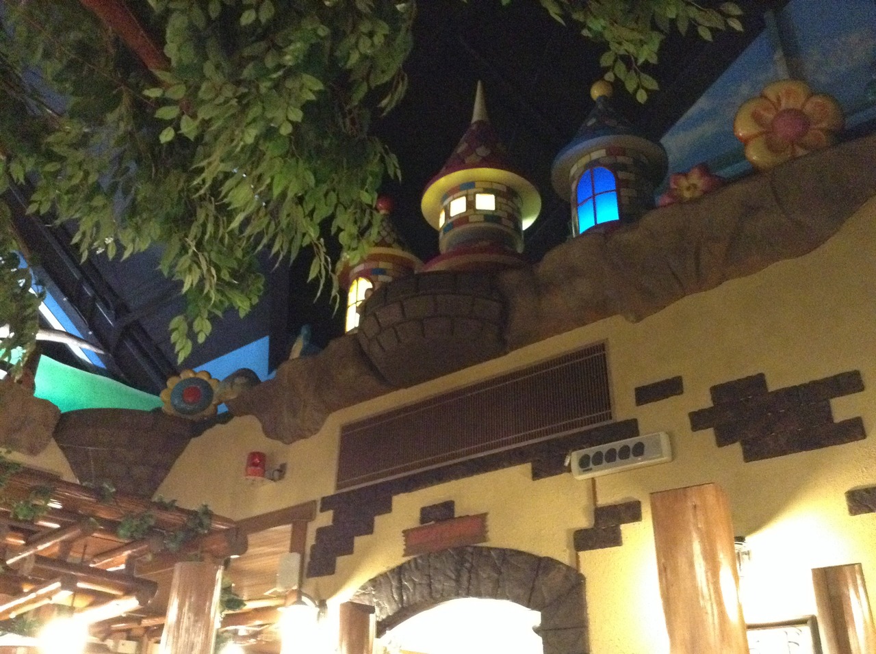 今までに行ったびっくりドンキーは、アメリカンな感じが多いのですが、このお店はメルヘンでした。動物がいたり、お城があったり。大きな木があったり☆とても気に入りました♪