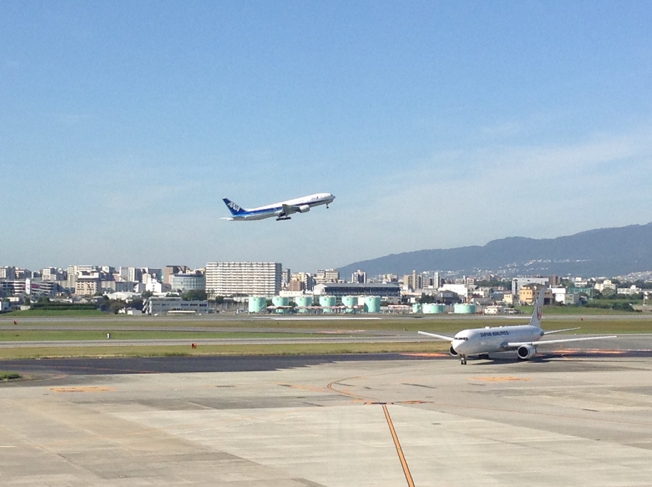 大阪国際空港の4Fにある展望デッキ。ここからは、飛行機の離陸&到着がよく見えました☆ただ、子供の背の高さだとちょっと見づらそうでした。そこが残念かな~。