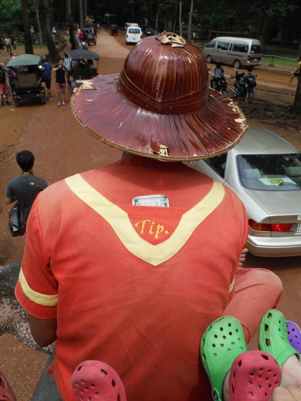 子供が象さんに乗りたいと言っていたので、アンコールトムのバイヨンを1周するコースで象さんに乗りました。