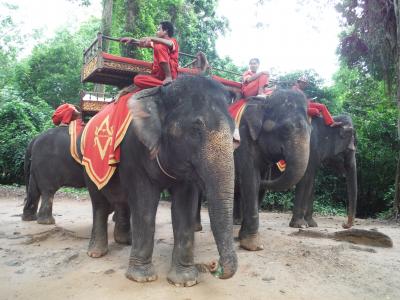その日の団体客の人数にもよると思いますが、できるだけ早めに行った方がいいかと思います。値段は1人20ドル。カンボジアの物価からすると高いですが、観光地なので仕方がないかな。3歳と5歳の子供は、無料でした。4人全員で象さんに乗れましたよ。大人だと3人まで乗れるようでした。