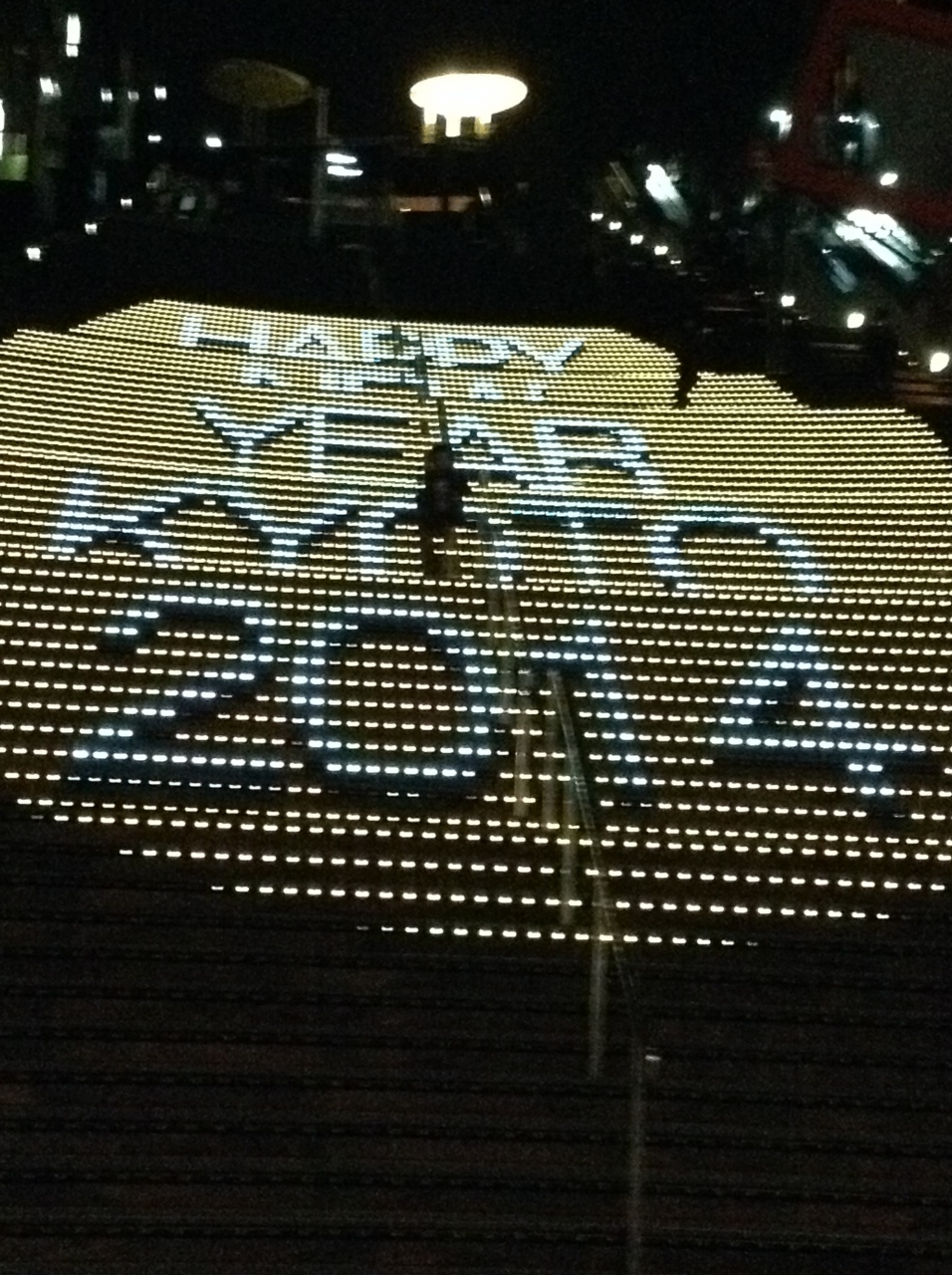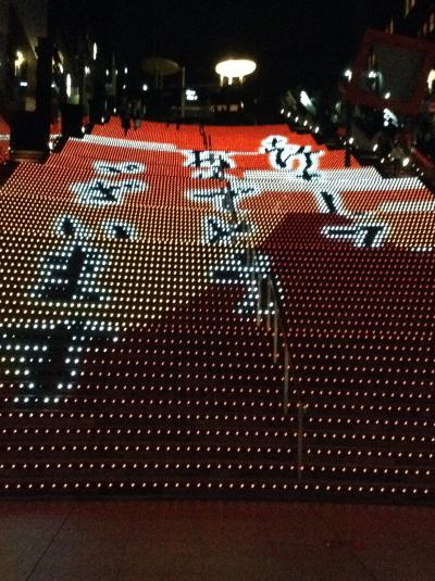 京都駅ビルにある大階段に、夜になるとイルミネーションが☆今回は、お正月の3日に行ったので、イルミネーションがお正月バージョンになっていました♪
