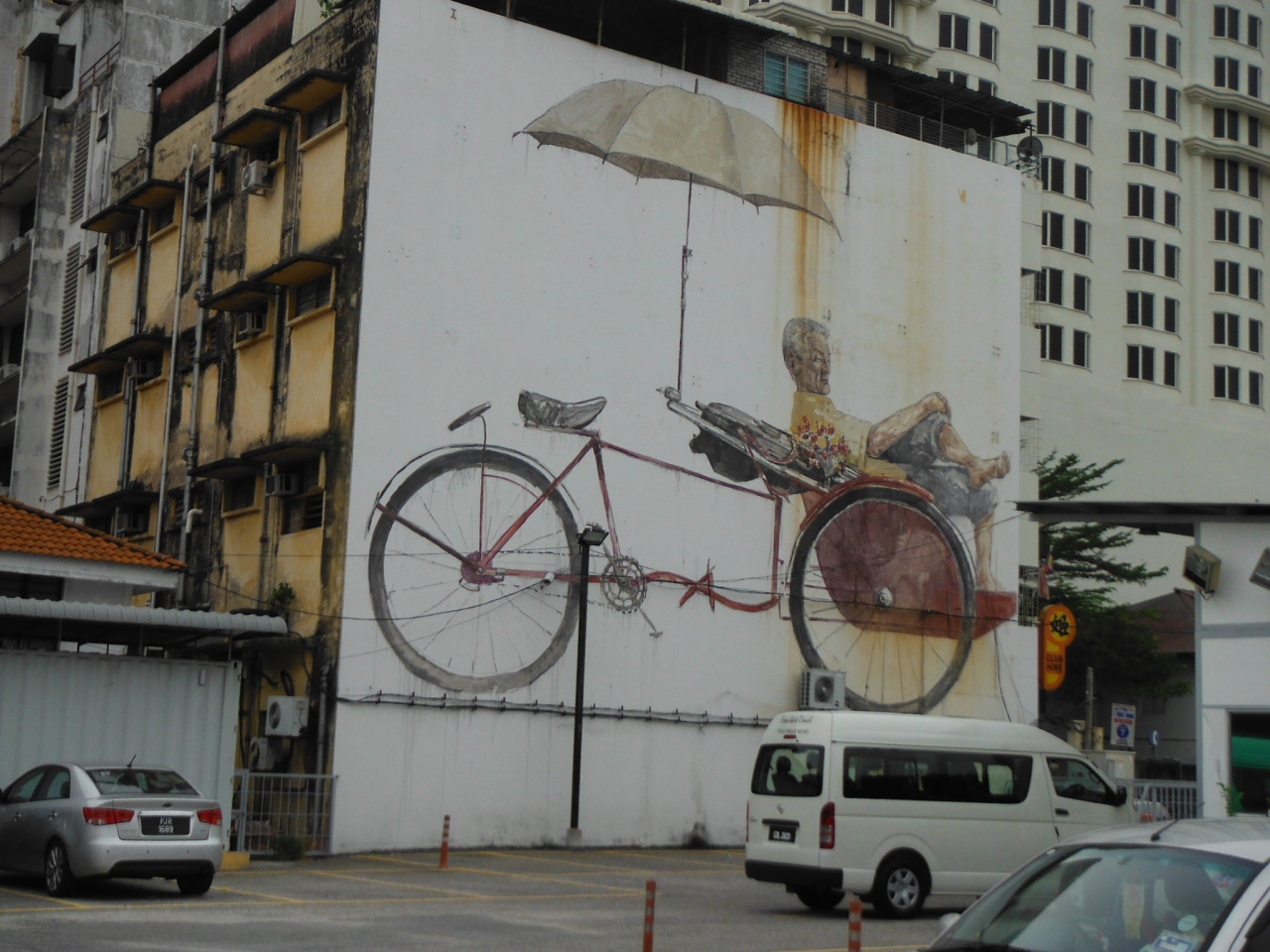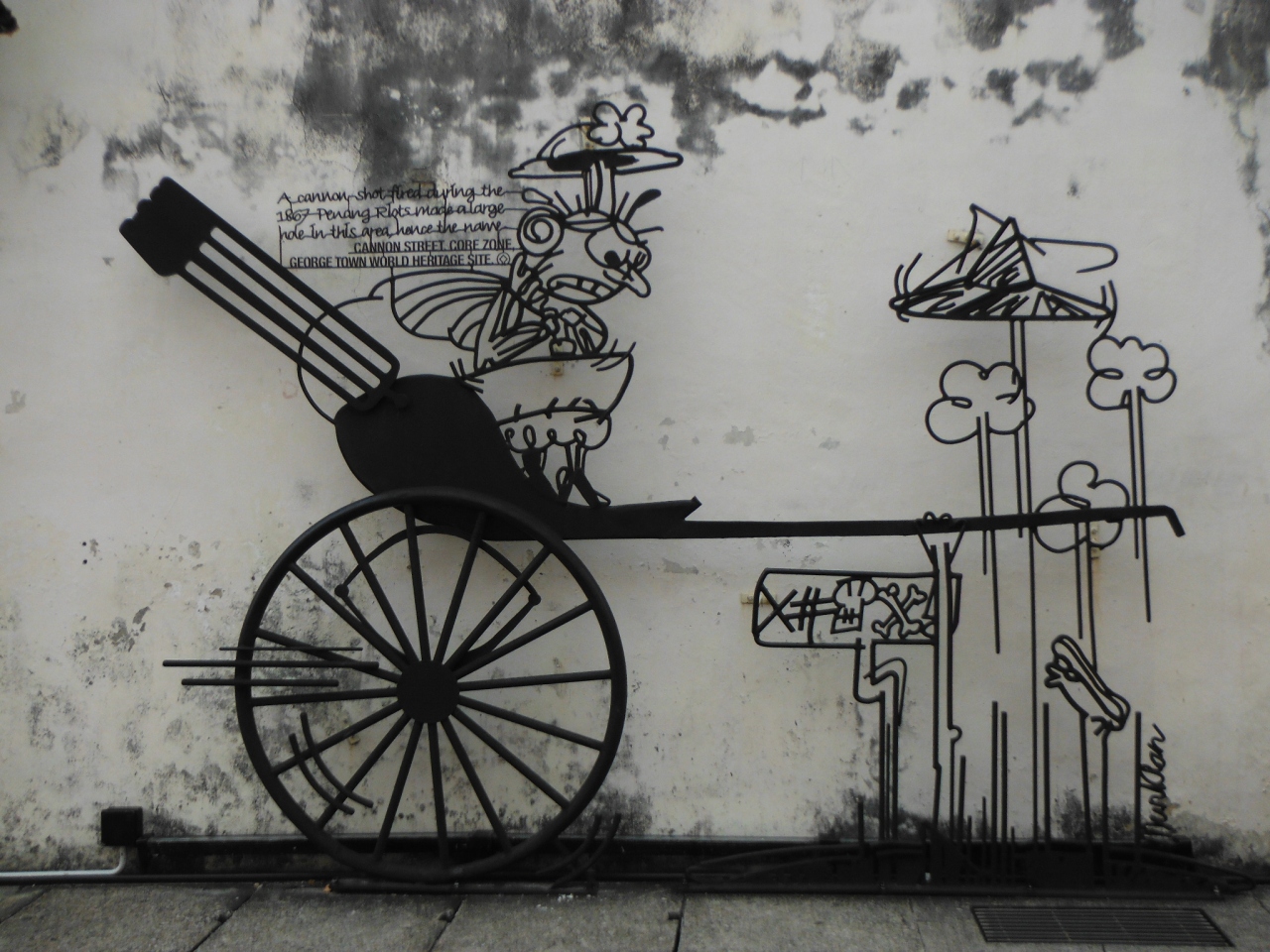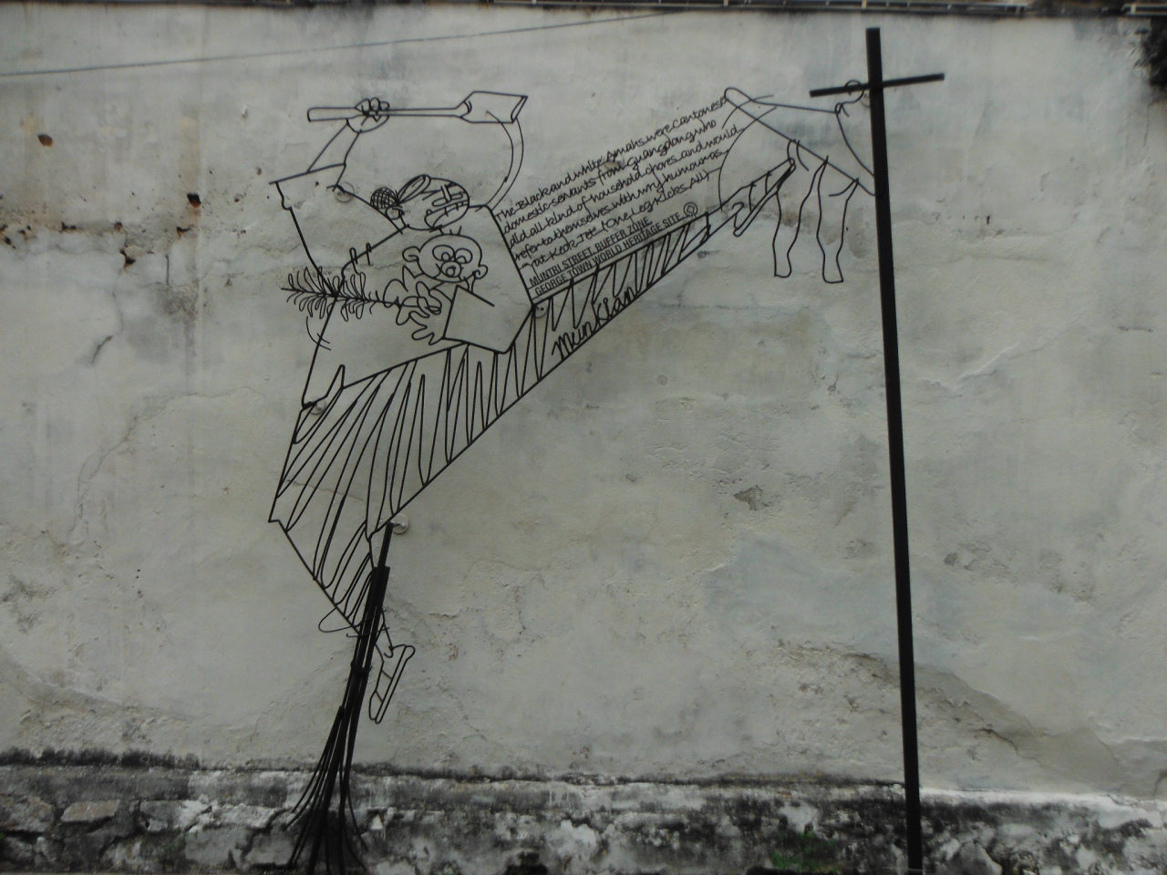2012年のジョージタウン·フェスティバルのために、街の至る所に壁画や針金アートが作られたようで、世界遺産の街並みに溶け込んでいて、面白いです☆