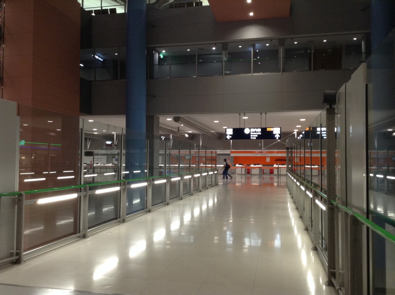 飛行機を降りてから、乗り換えのターミナルに行くまでがまだまだ工事中でした。もう空港ができてから、だいぶ経つんですけどね~。まだ完成してないようでした。
