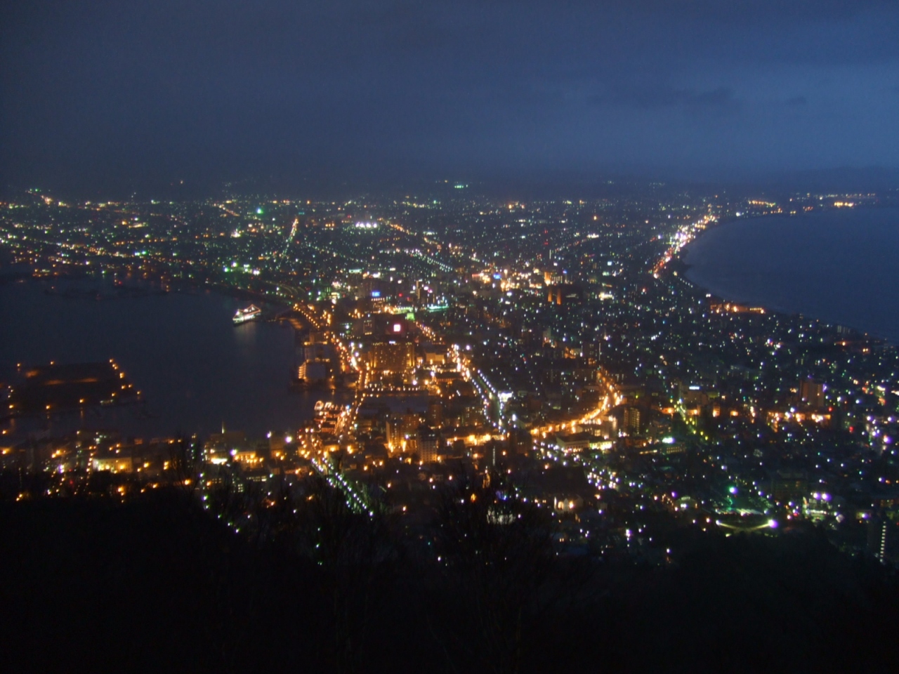函館の町に明かりが灯り始める日没前くらいから夜景へと変貌していく様子がとても綺麗です。あたりがうっすら明るいくらいの夜景が私は好きですね~。