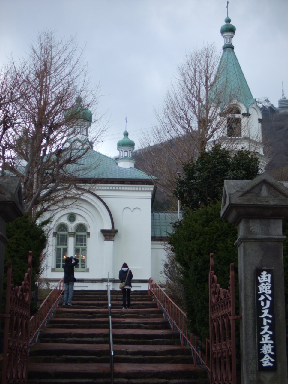 函館の元町にある教会です。函館ハリストス正教会は、日本初のロシア正教会聖堂で、現存する聖堂は1916年築だそうです。古いのに、綺麗で美しいですね。