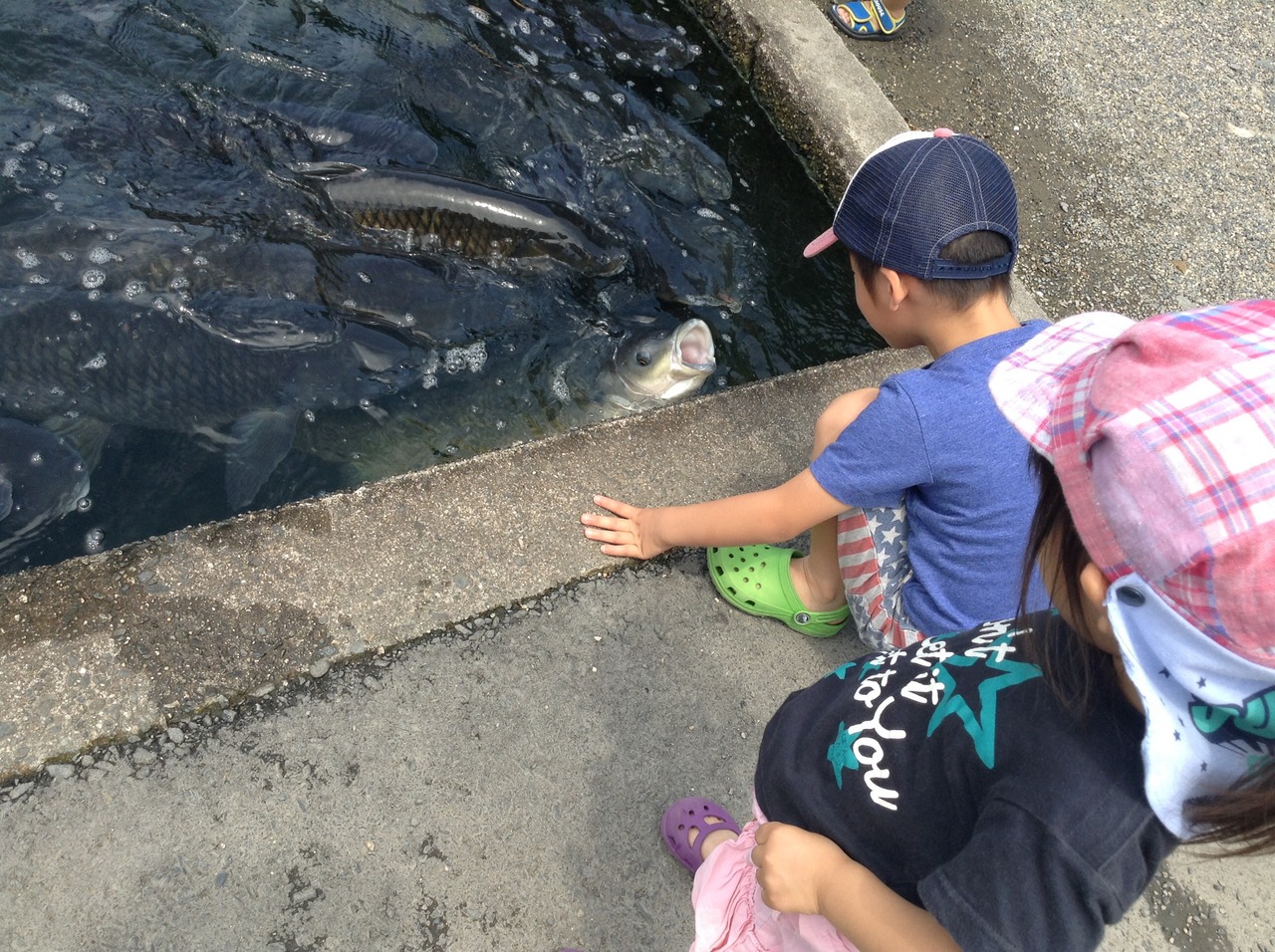園内では、魚のつかみ取りや魚釣りなどが楽しめます。我が家は、小さい子供なのでこれらの体験はしませんでしたが、鯉にエサをあげることができて、すごく楽しそうにあげていました。