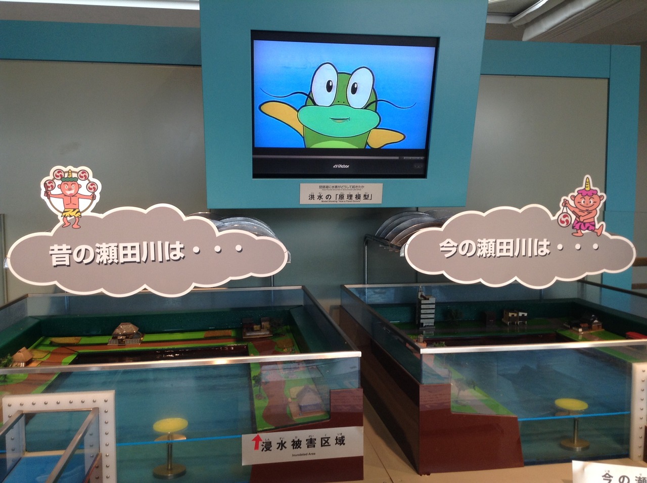 施設内は、瀬田川洗堰の歴史が紹介されていて、じっくり読んだら勉強になるかと思います。今回は、小さい子連れだったので、じっくりは読めませんでしたが、洪水を減らすために川底を掘ったことや、洗堰の役割など模型などを通して知ることができました。
