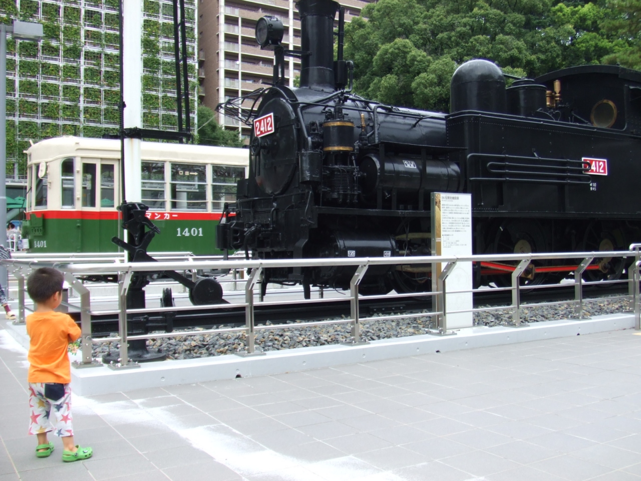 科学館前にはSLや電車の展示もあって、小さな子供たちは嬉しそうに眺めていました。