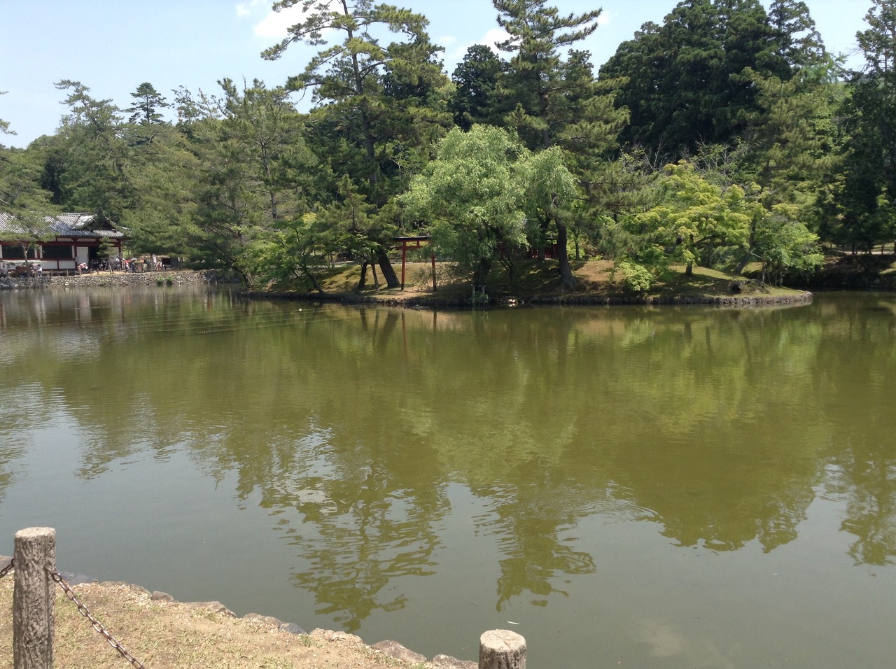 東大寺南大門から大仏殿に行くまでにある池です。覗いて見ると、鯉とカメがたくさん泳いでいました。サラッと通り過ぎようかと思いましたが、子供はとても嬉しかったようで、しばらく眺めていました。近くに鯉のエサ売り場もありましたよ。