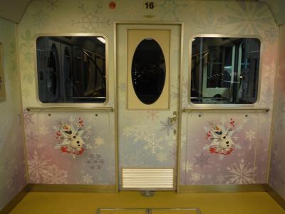 今回は、『アナとエルサのフローズンファンタジー』のイベントの時期だったので、アナ雪のラッピングモノレールが走っていました♪子供も大人もとってもテンションが上がりましたぁ。