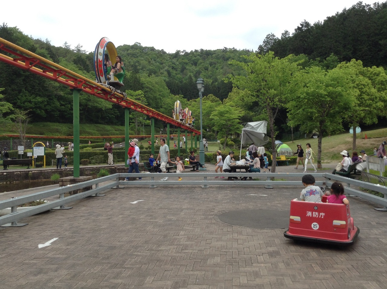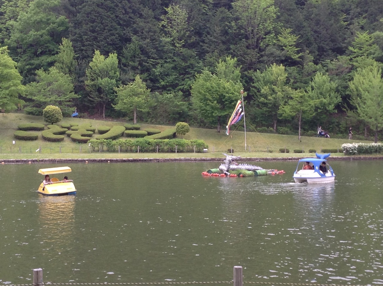 乗り物は、ゴーカート、ボート、小さなジェットコースターみたいな乗り物、それとサイクルモノレールという自転車のようにこいで進む乗り物などがありました。ほとんどが、1時間待ち。ボートに関しては2時間以上待ちでした。恐るべし!!ゴールデンウィーク!!