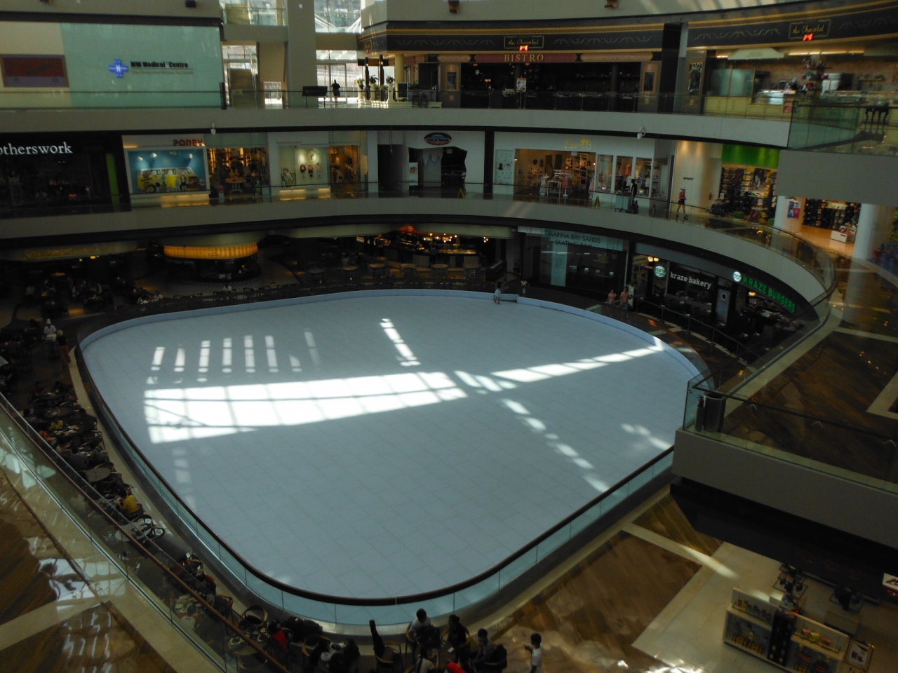 フードコートの横にスケートリンクがあって、オシャレです。あまり滑っている人はいませんでしたが、発想が斬新だなぁと思いました。