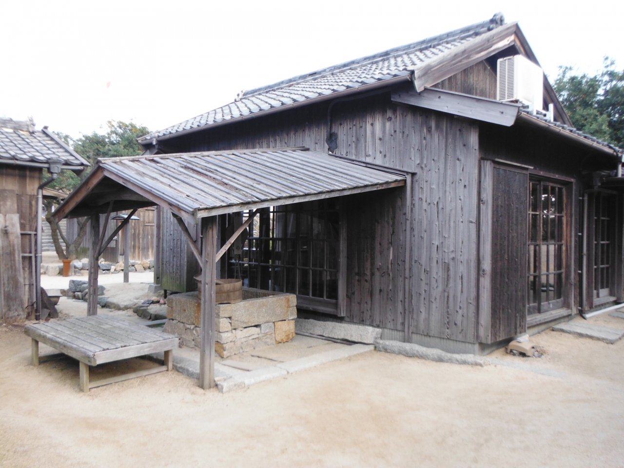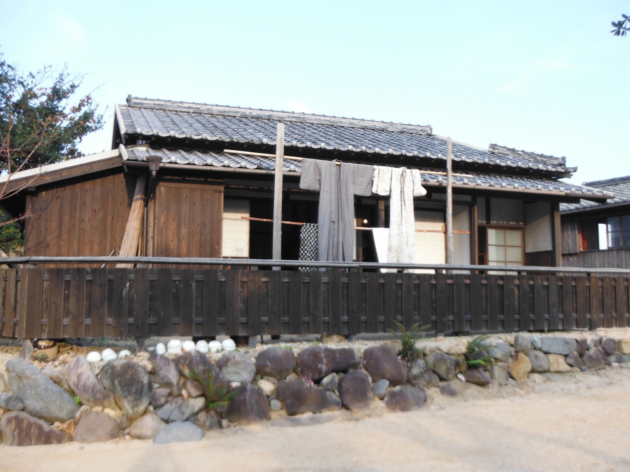 『二十四の瞳映画村』は、昭和初期の日本の風景を再現された場所です。着物が干してあったり、井戸があったり、古い看板があったりと、一昔前の日本の町並みが再現されています。