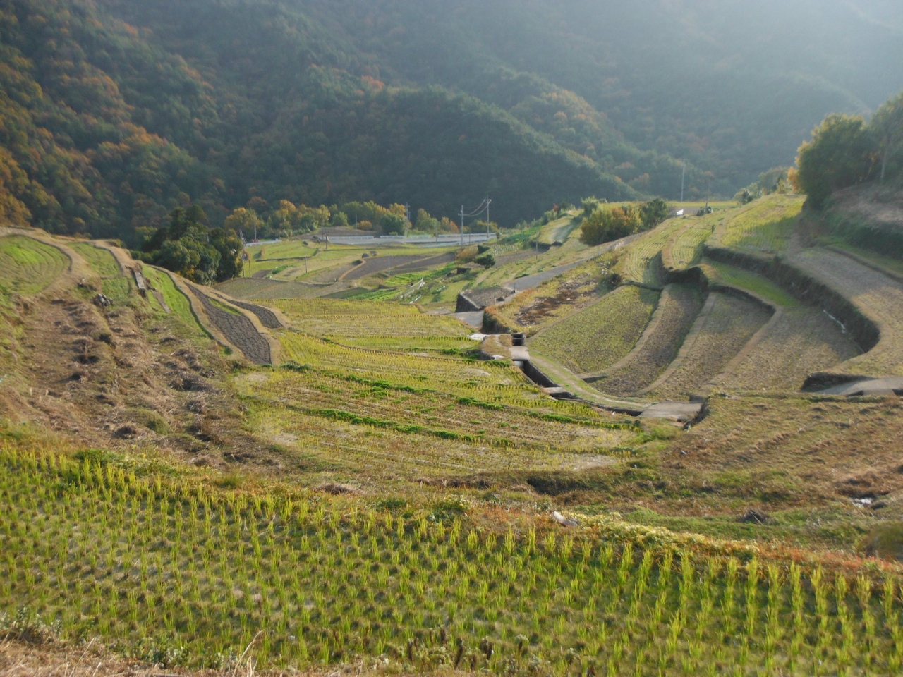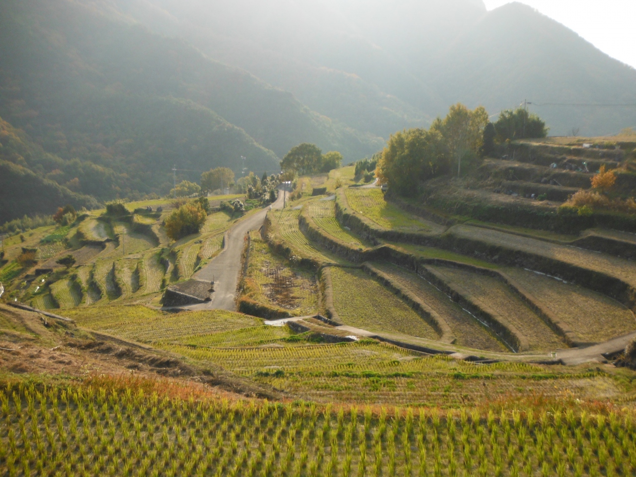 棚田の中に共同洗場があるのですが、その辺りからが綺麗に写真が撮れるかな?と思います。