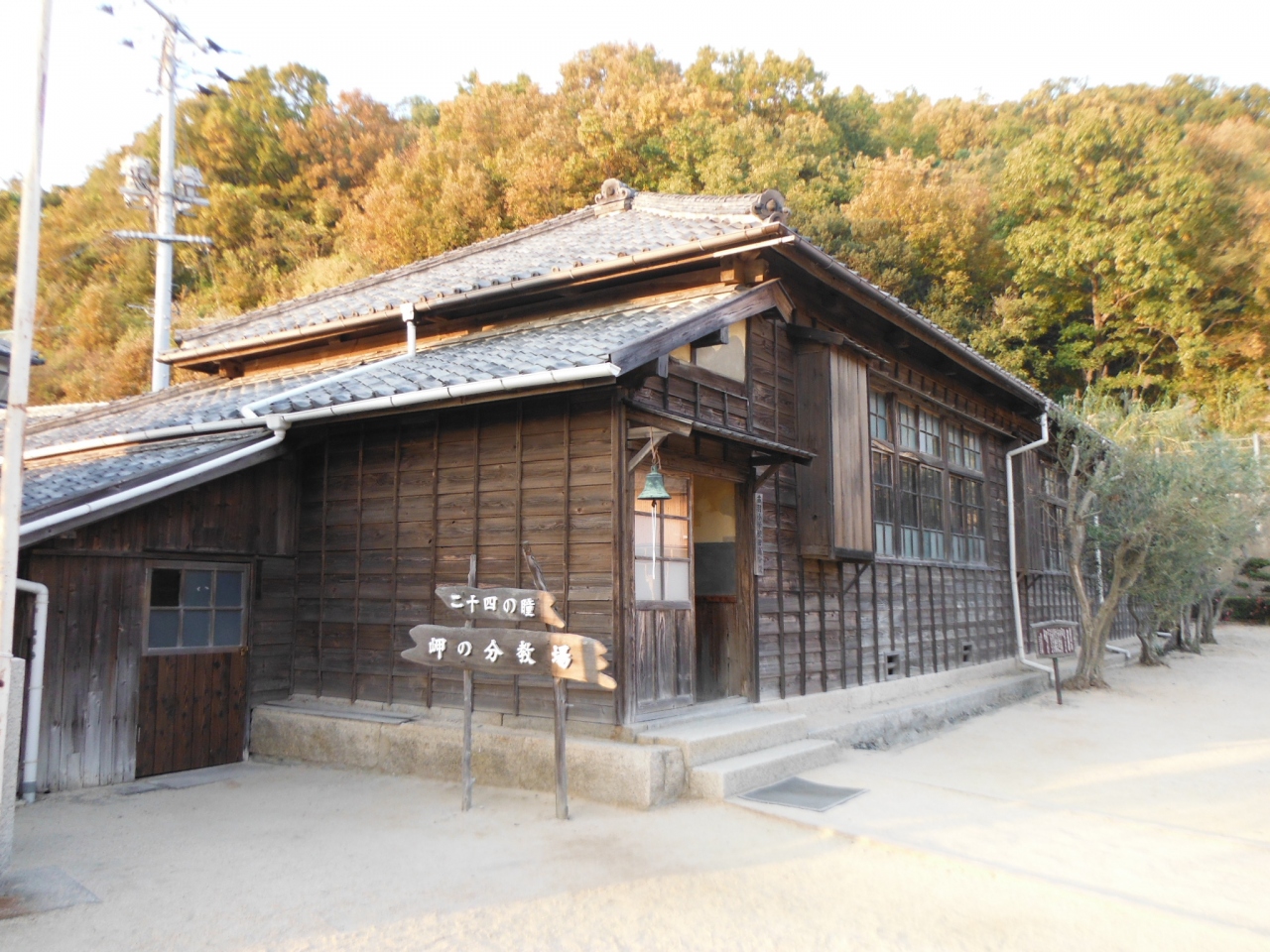 『二十四の瞳映画村』に再現されている『岬の分教場』は、2代目の映画の時から使用されているセットの場所で、もともとは、ここが本当の場所です。この『岬の分教場』の前に道路ができたりして景観が変わったために、『二十四の瞳映画村』に再現されたそうです。とても不思議だったので、『岬の分教場』の受付の方に聞いたら教えてくださいました。
