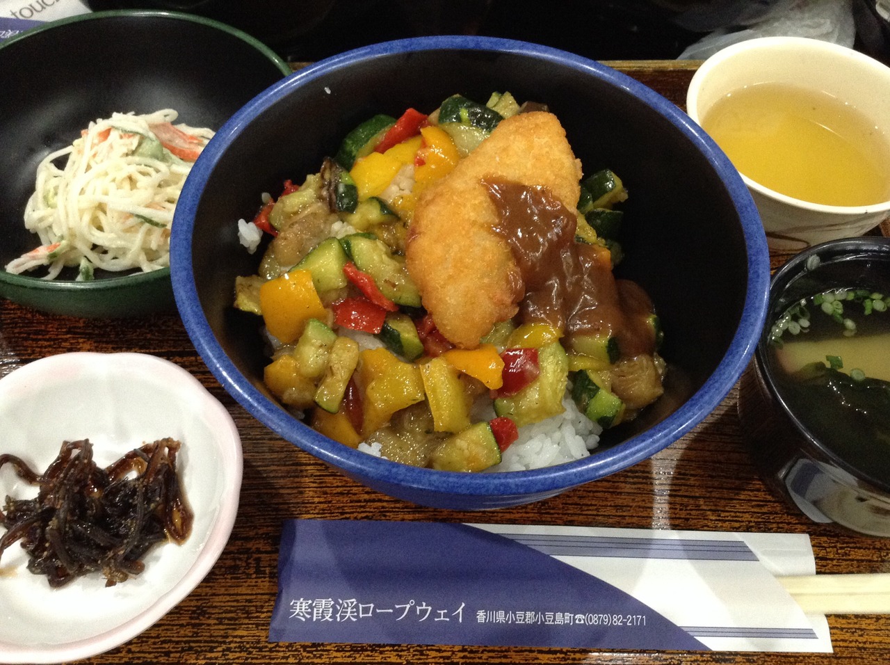 こちらのひしお丼は、白身魚の揚げ物が野菜の上にひとつだけのっているだけでした。私が勘違いしていたのが悪いのですが、ちょっとガッカリでした。