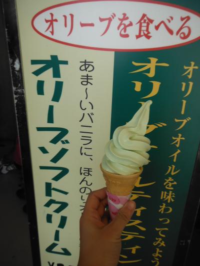 道の駅では、『オリーブソフト』が売っていて、抹茶のような苦味が少しあって、とっても美味しかったです。売店コーナーでは、色々なお土産が売られていて、試食もできるのでお土産が買いやすかったです。お土産のほとんどは、こちらで購入しました☆
