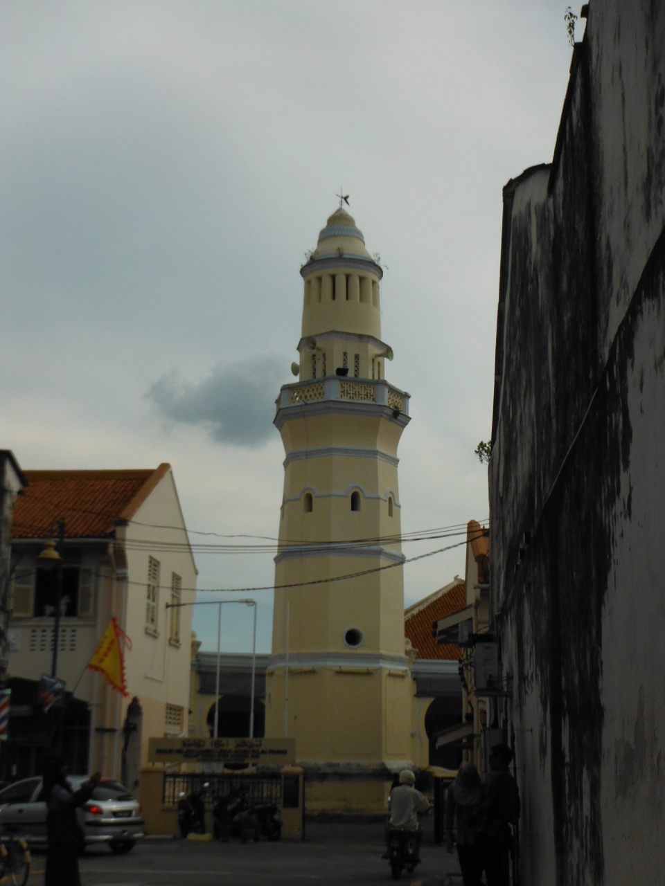 はじめ、このクリーム色の可愛らしい外観を見て、時計台かな?と思いました。調べてみて、スマトラ様式のモスクだと分かり、びっくりしました。
