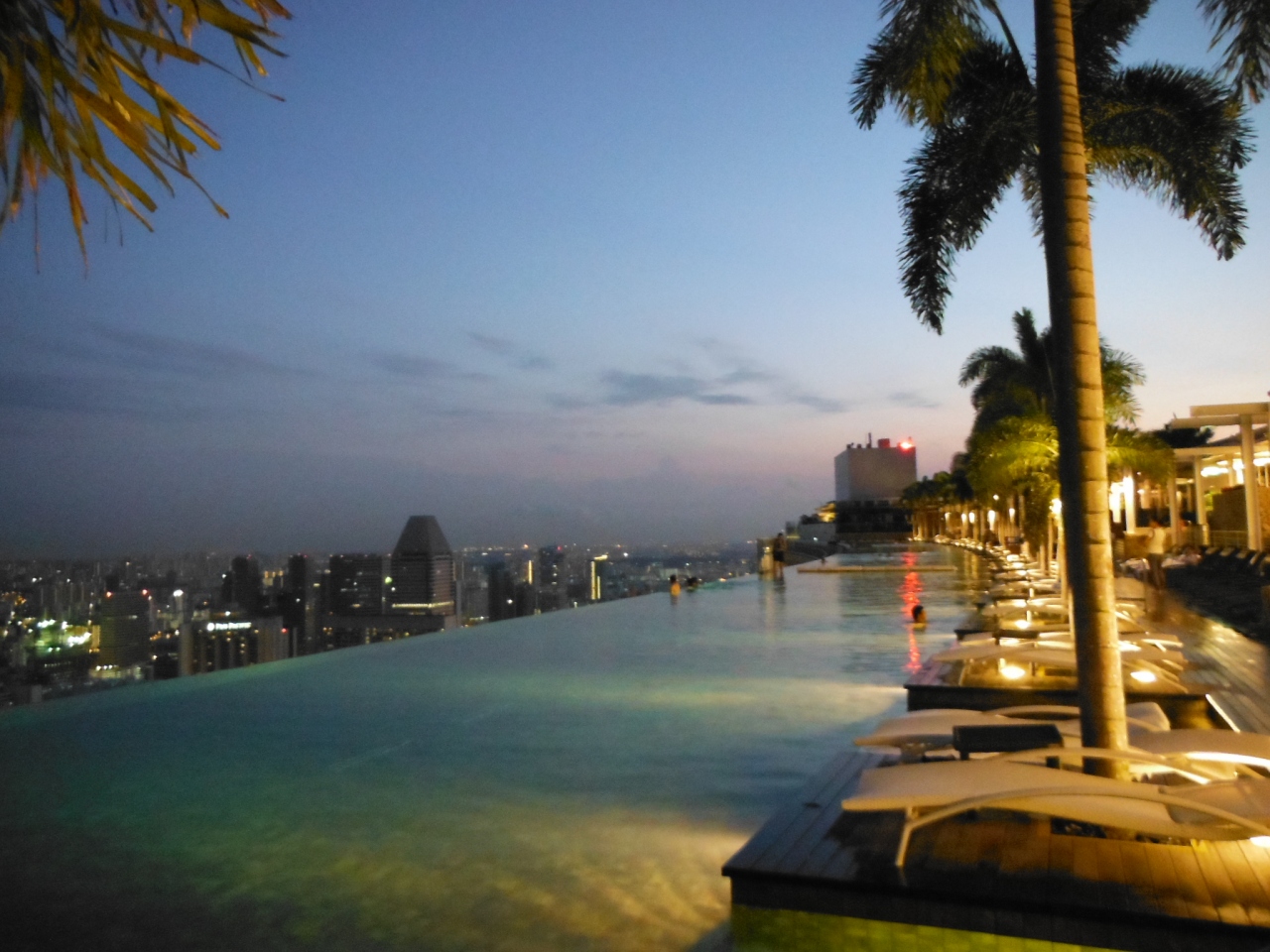 インフィニティプールは期待を裏切らない素敵なプールでした。高層ビル群を見ながらのプールは、味わったことのない不思議な感覚ですが、気持ちよかったです。