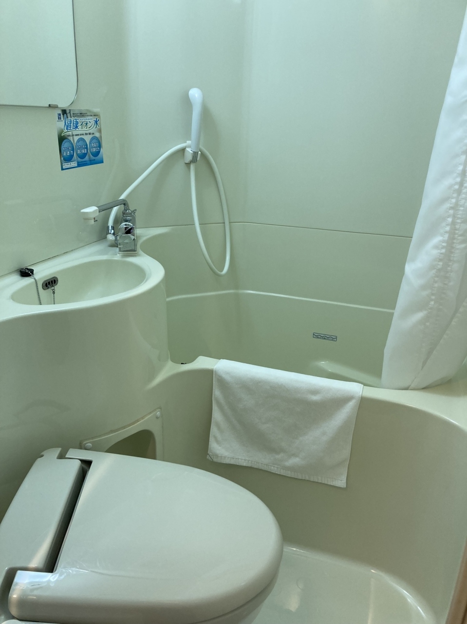 スーパーホテルは、ビジネスの中でも部屋は狭めだなぁと思いました。まぁ。寝れればいいかぁという感じだったので、問題なし。ユニットバスが小さいのは男の人だと辛いですね。