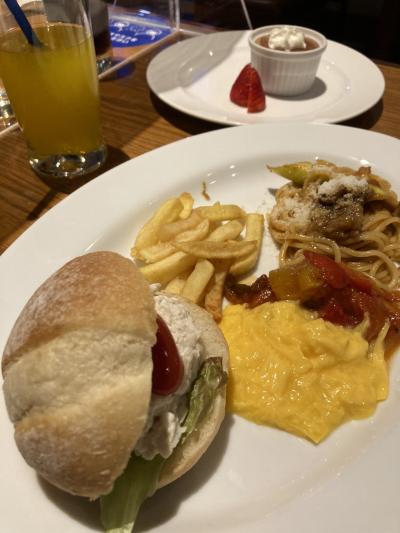 3種類のパスタ、2種類のピザの中から選べました。エビとカニがのっているピザにしましたが、美味しかったです。