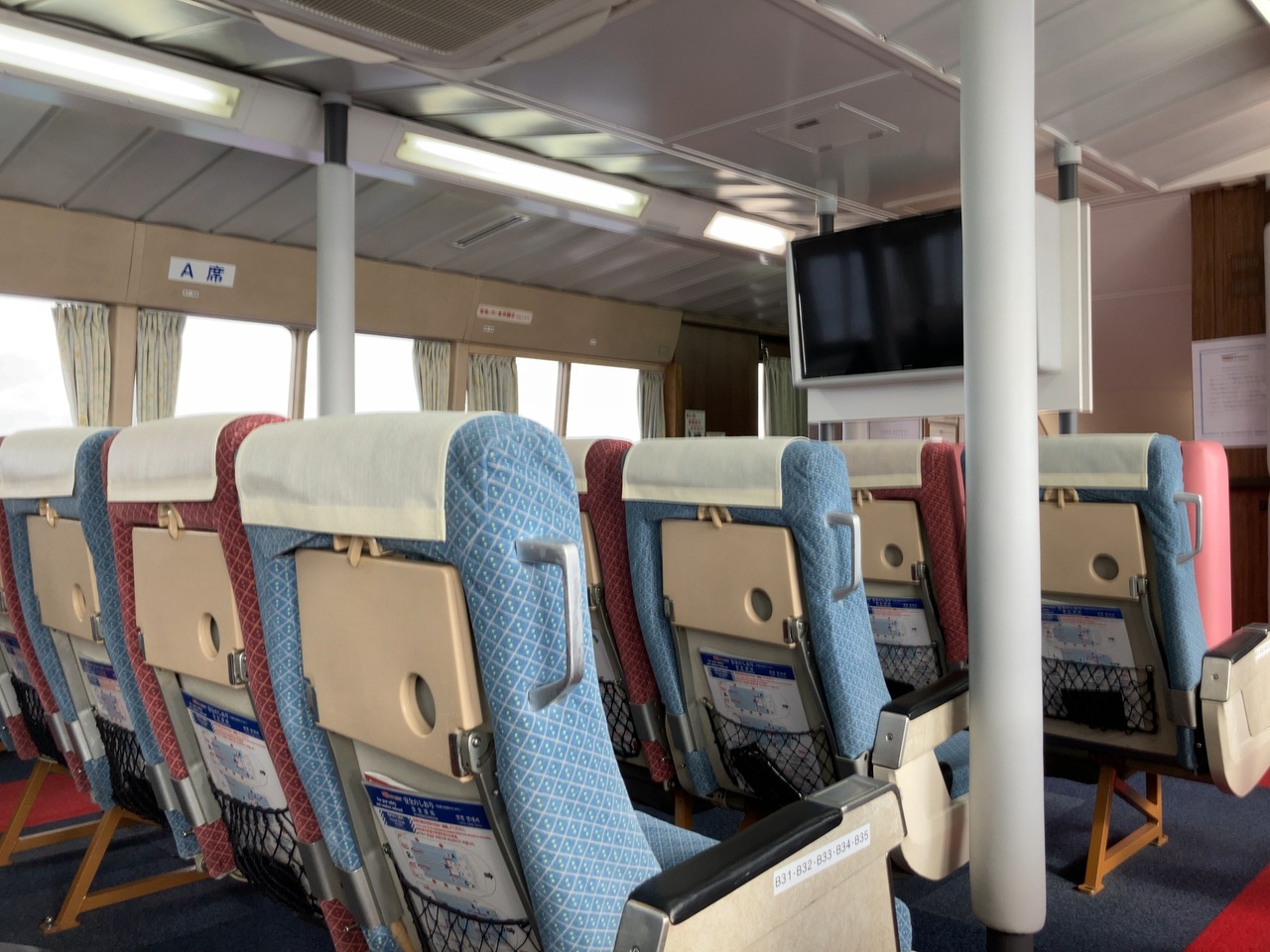 屋久島から種子島まで、高速船トッピーに乗りました。乗船30分前に受付に行くと、指定席をとってくれました。