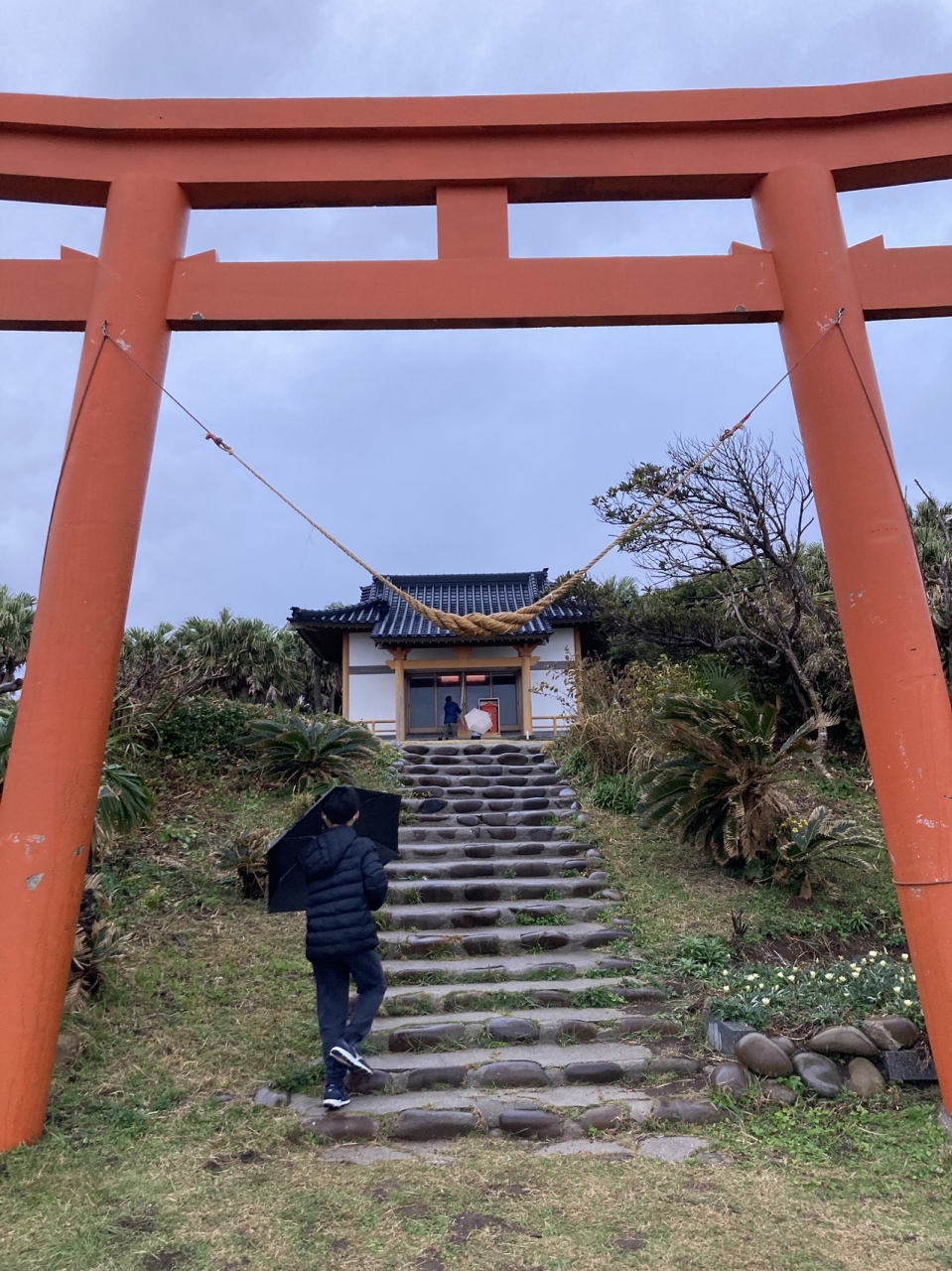 屋久島1周観光をしている時に立ち寄りました。はじめは、ここの神社の存在を知らなかったのですが、息子が遠くから見つけて、ああいう場所に行ってみたいなぁーと言ったので、行ってみました。