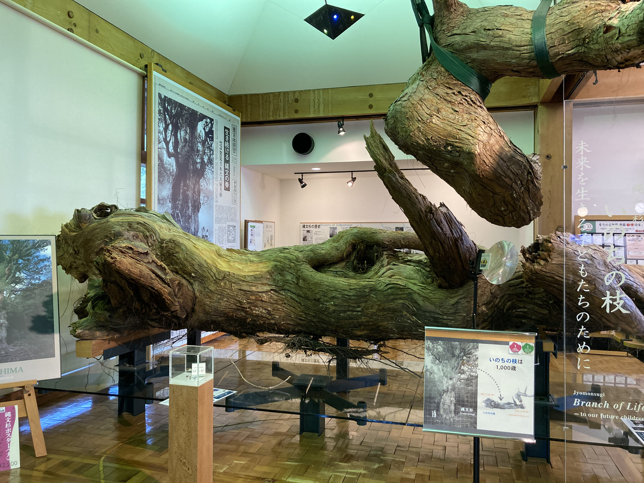 中には、縄文杉の折れた枝が展示されていて、縄文杉がいかに大きいかが分かります。枝の大きさにびっくりしました。