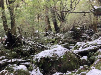 苔むす森は雪がかぶっていて、苔のキレイな風景はみれませんでした。残念。