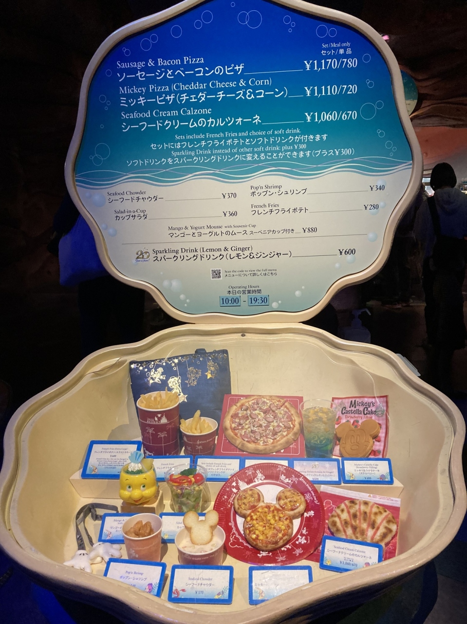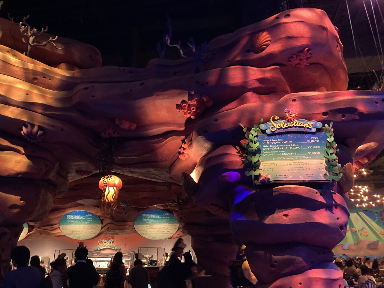 ディズニーシーのマーメイドラグーンにあるレストラン。ピザやポテトなど軽食をとるのにオススメです。
