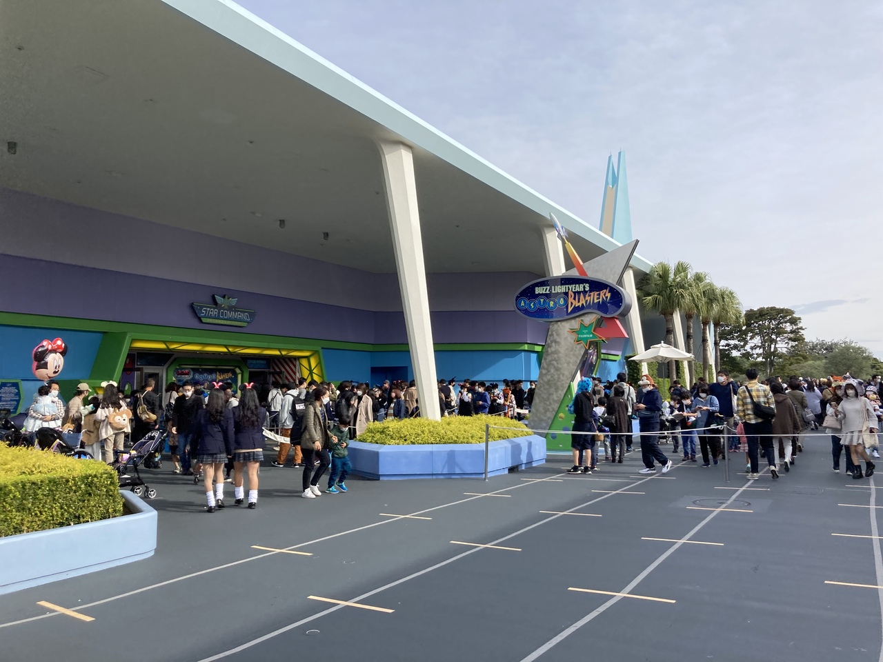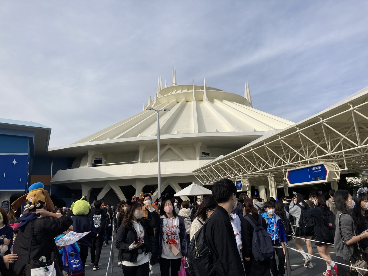 入口から比較的近いためか、結構な人がスペースマウンテンに流れ込んでいく印象。25分待ちでした。昼からは10分待ちになっていたので、入場制限している間は午後の方が待ち時間少なめで乗れると思います。